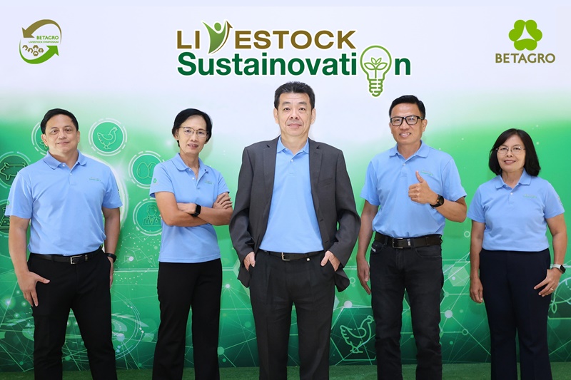 “นายสมศักดิ์ บุญลาภ” ประธานเจ้าหน้าที่ปฏิบัติการ กลุ่มผลิตปศุสัตว์ บริษัท เบทาโกร จำกัด (มหาชน) (กลาง) พร้อมด้วยคณะผู้บริหารกลุ่มผลิตปศุสัตว์ จัดงาน “BETAGRO Livestock Symposium 2023” ภายใต้แนวคิด “Livestock Sustainovation”