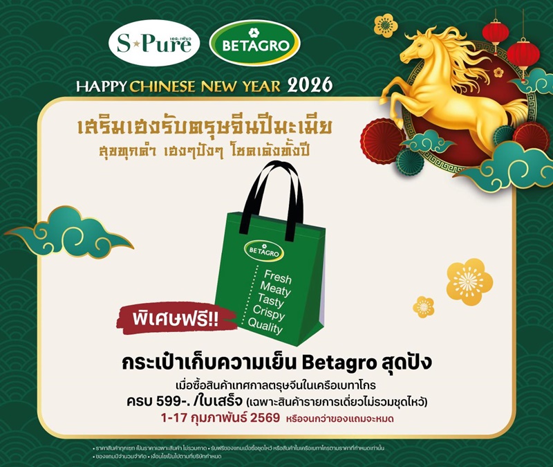 Additionally, customers who purchase participating Betagro products under the Chinese New Year promotion with a minimum spend of 599 baht per receipt will receive a complimentary Betagro cooler bag, a stylish gift symbolizing good fortune throughout the year.**