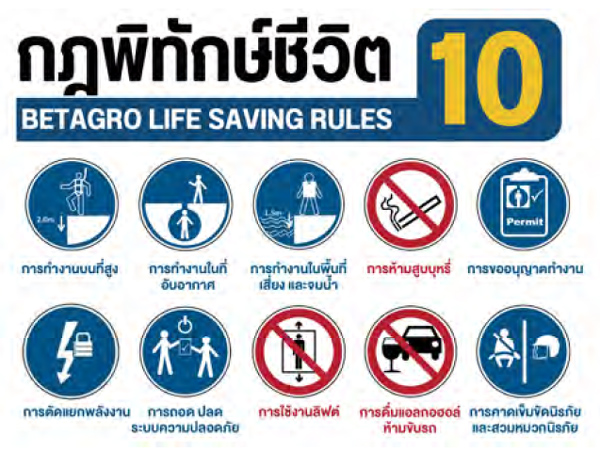 เบทาโกรตระหนักเสมอว่า “พนักงานทุกคนเป็นทรัพยากรที่มีคุณค่า เราจึงมุ่งมั่นที่จะดูแลพนักงานให้มีคุณภาพชีวิตที่ดี ภายใต้สถานที่ทำงานและกระบวนการทำงานที่ปลอดภัย” บริษัทฯ จึงมีความพยายามอย่างยิ่งที่จะทำให้จำนวนอุบัติเหตุลดลงจนเป็นศูนย์ ด้วยมาตรการต่างๆ อาทิเช่น กฎพิทักษ์ชีวิต 10 ประการ กิจกรรมการค้นหาความเสี่ยงเพื่อป้องกันก่อนเกิดอุบัติเหตุ และ การจัดการความปลอดภัยกระบวนการผลิต (Process Safety Management – PSM) มาเป็นแนวทางในการพัฒนาระบบการจัดการชีวอนามัยและความปลอดภัยของเบทาโกร (BETAGRO Safety Framework) เพื่อมุ่งสู่เป้าหมายอุบัติการณ์เป็นศูนย์ (Zero Incident) ในปี 2026 อีกด้วย