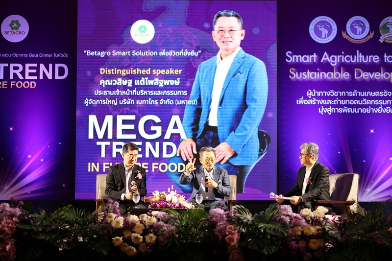 “คุณวสิษฐ แต้ไพสิฐพงษ์” ประธานเจ้าหน้าที่บริหารและกรรมการผู้จัดการใหญ่ บริษัท เบทาโกร จำกัด (มหาชน) ร่วมเสวนาวิชาการ Gala Dinner ในหัวข้อ “Mega Trend in Future Food" ซึ่งจัดโดยคณะเกษตรศาสตร์ มหาวิทยาลัยเชียงใหม่ และมูลนิธิพัฒนาเกษตร มหาวิทยาลัยเชียงใหม่ ณ อุทยานหลวงราชพฤกษ์ จังหวัดเชียงใหม่